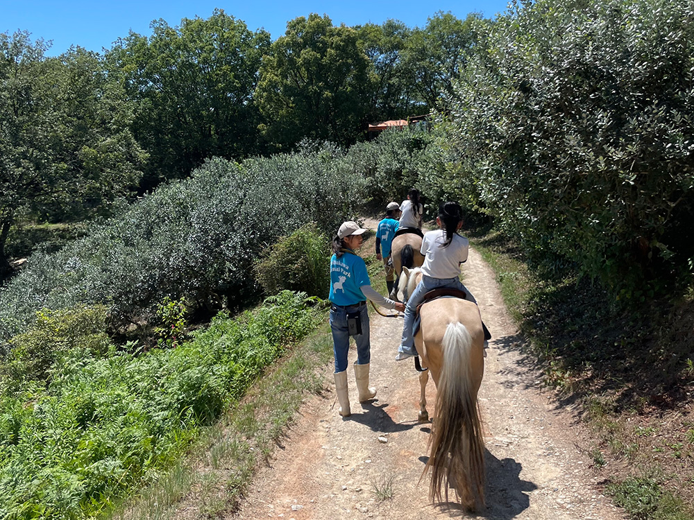 馬の背中に揺られながら 木の葉をくぐってみたり、いつもと違う景色を楽しんでね。