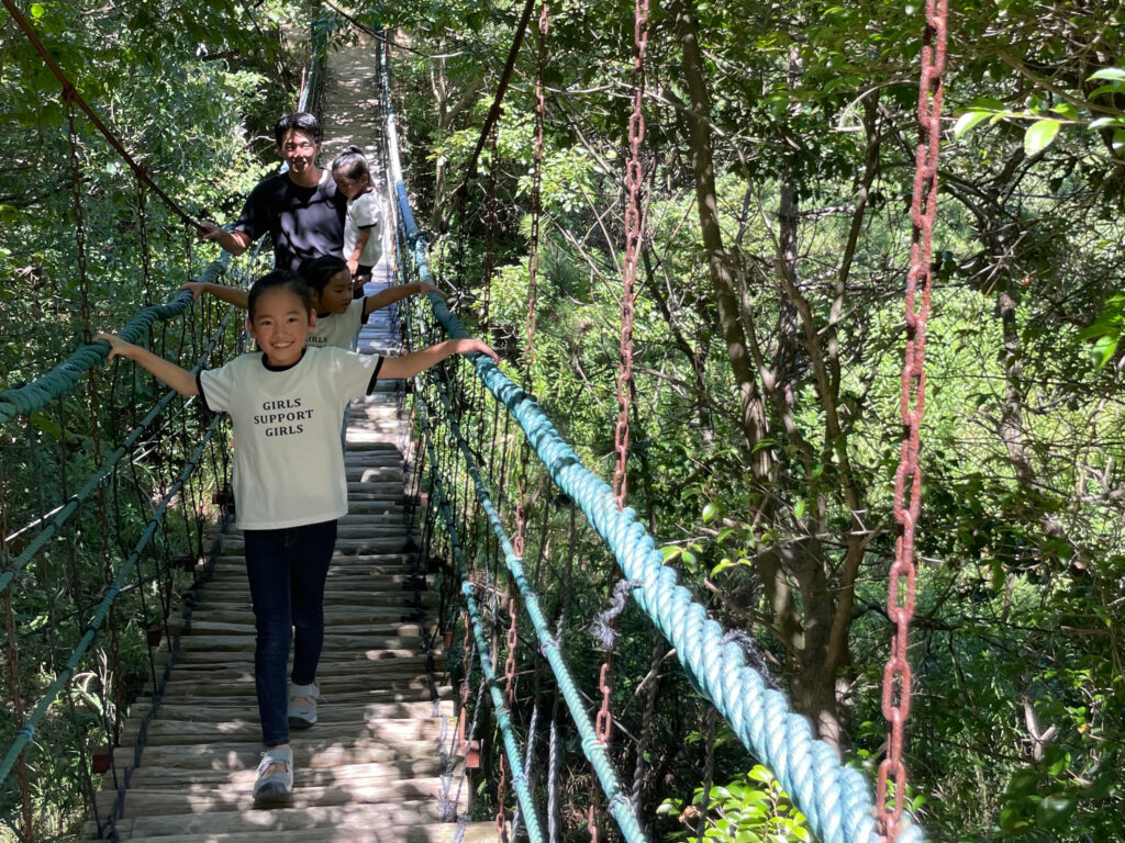 園⻑が⼀⼈で作った⼿作りのつり橋。