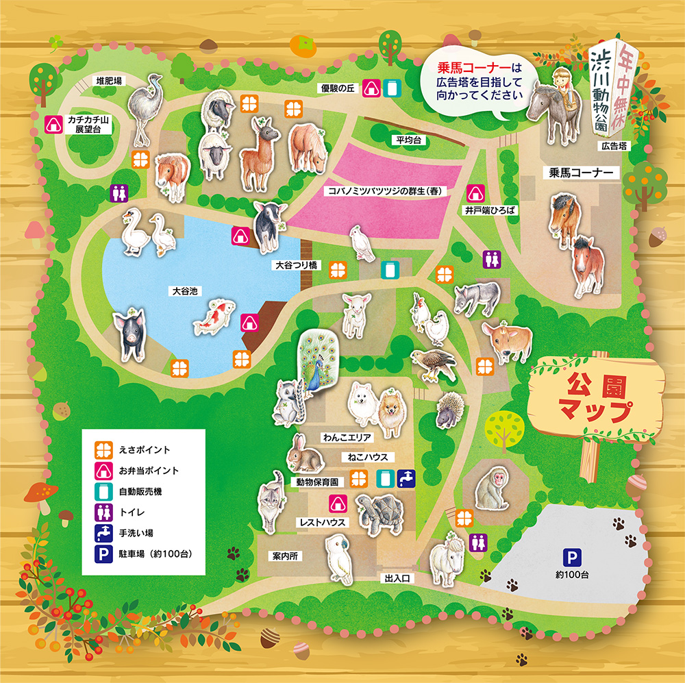 (この中で持ち込みOKの お弁当を食べてもいいですよ。でも 動物たちには、あげないでね。)